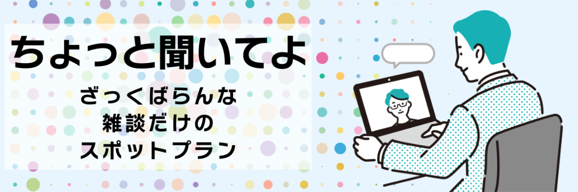 これまで「話すことで頭が整理されます」「質問内容自体がまとまらず悶々としていましたが、話しているうちに道筋が見えました」といった声をいただくことがあり、雑談だけのざっくばらんな「ちょっと聞いてよ」プランもご用意しました。KATAANの雰囲気を知りたいといった目的でも歓迎いたします。