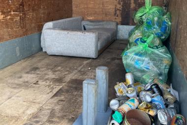 ペットボトルや缶のほか、信じられないような大物もあります。一人ではとても回収できないようなものもあり、協力して運びます(捨てにきた側も一人ではないということです……)。