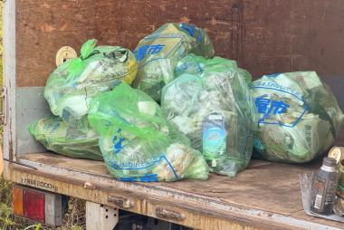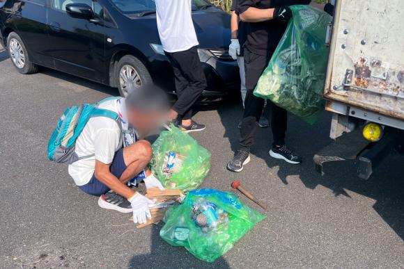 運べないような時、近くのグラウンドで練習をしている野球チームの生徒さんが手伝ってくれたこともあります。拾ったゴミは分別し、有志のかたのトラックに積み込みます。